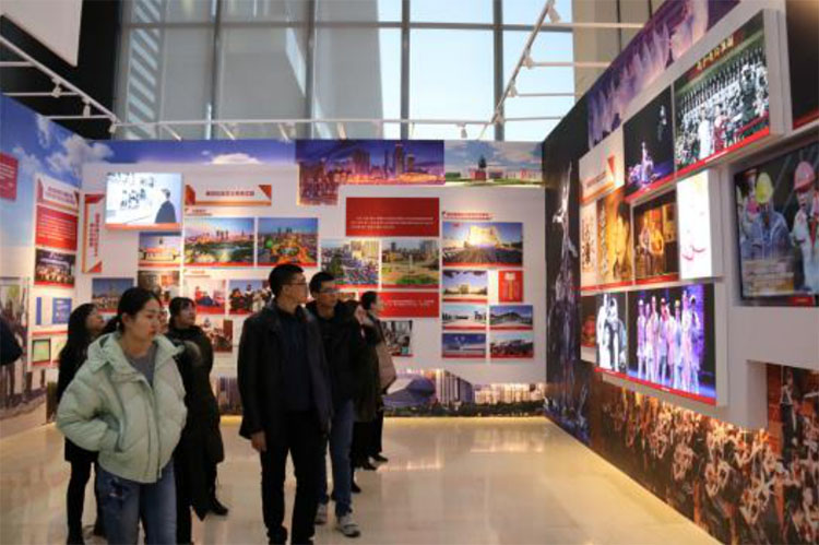 展覽分為“70 年奮斗歷程”、“經(jīng)濟建設成就”、“政治建設成就”、“文化建設成就”、“社會建設成就”、“生態(tài)文明建設成就”和“黨的建設成就”等七個主展區(qū)。通過解說員的現(xiàn)場解說,使大家了解了 70 年來,遼寧省對祖國建設作出的巨大貢獻和翻天覆地的變化,在場黨員無不對作為共和國長子的遼寧省對祖國經(jīng)濟、政治、文化等方面作出的貢獻而驕傲。